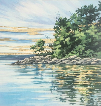 “Golden Light” - acrylic and gold leaf on canvas - 14x14 - available