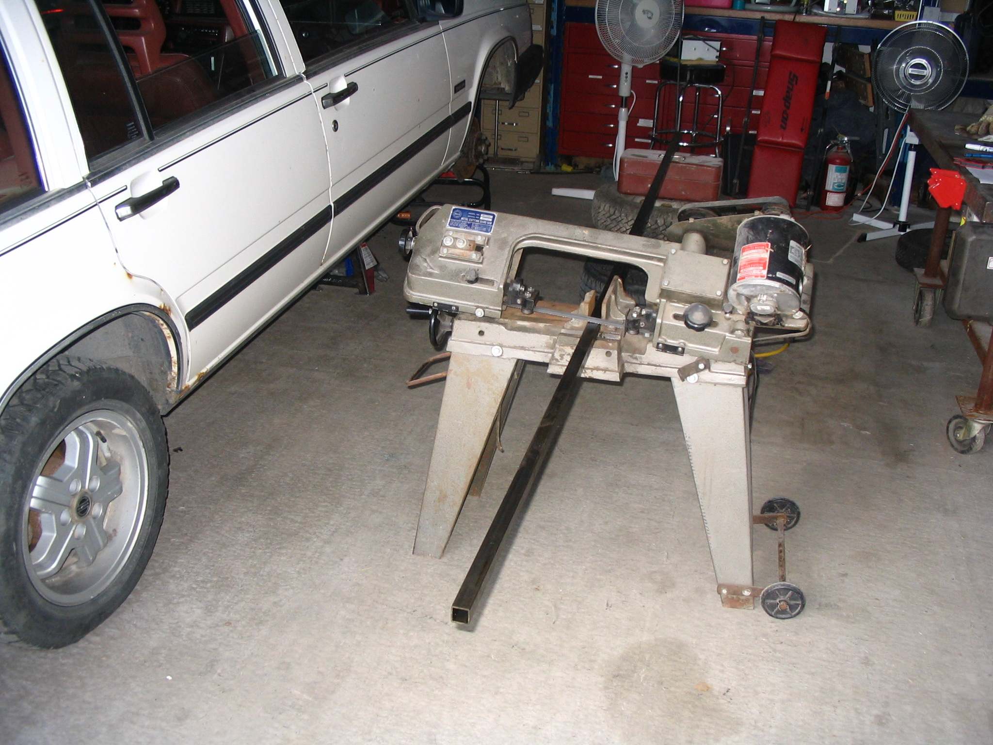 More angle cutting of the 1" tubing with the sander. Yes!... a chop saw for the rough angle cuts would have been much faster (reduce time on the sander) ! I have been using the band saw to cut some of the excess material off.