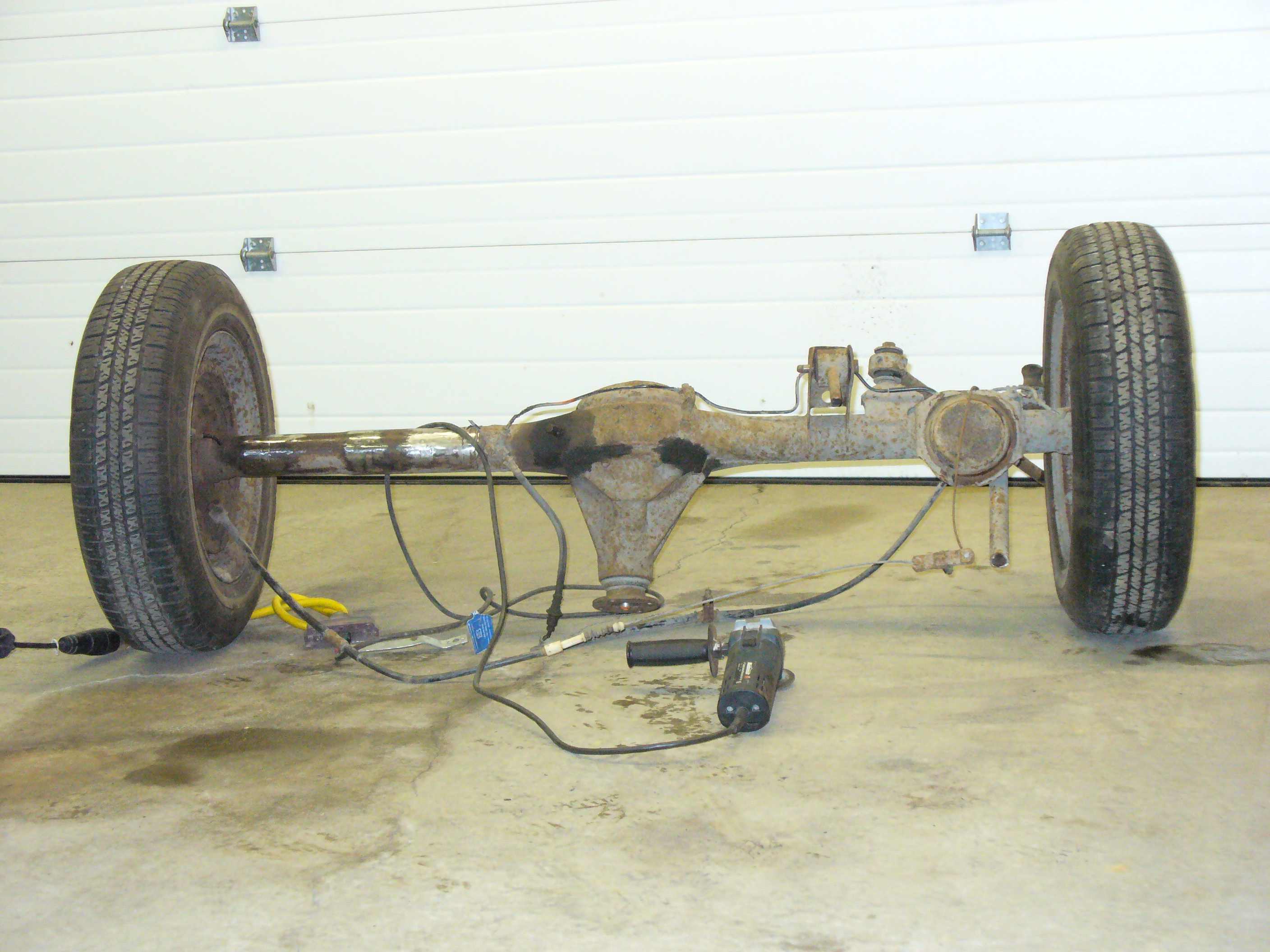 While waiting for fabrication of the rear bar top tube, I decided to clean up the rear axle. This involves the removal of all factory brackets and clean up of the old welds. I used a grinder with a cutting wheel disc to remove the brackets. Then ground the welds as close as possible. I then the other grinder with a flapper sanding disc to smooth out the areas.