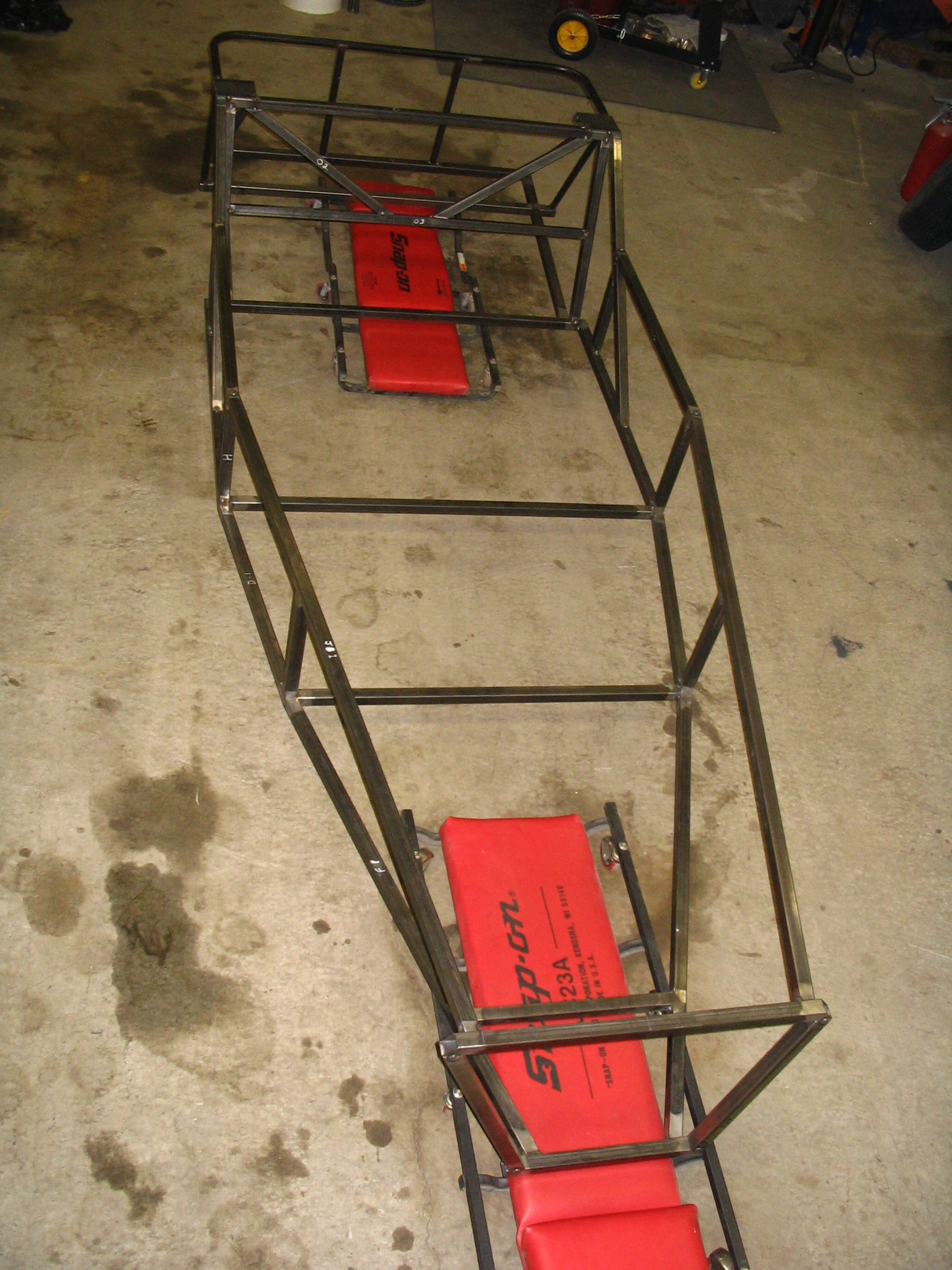 Onwards... I still need to do the rear end bottom corner tubes to finish off those corners. Stage 2 of the chassis build in nearing completion. A couple more steps and then I can start on the transmission tunnel.